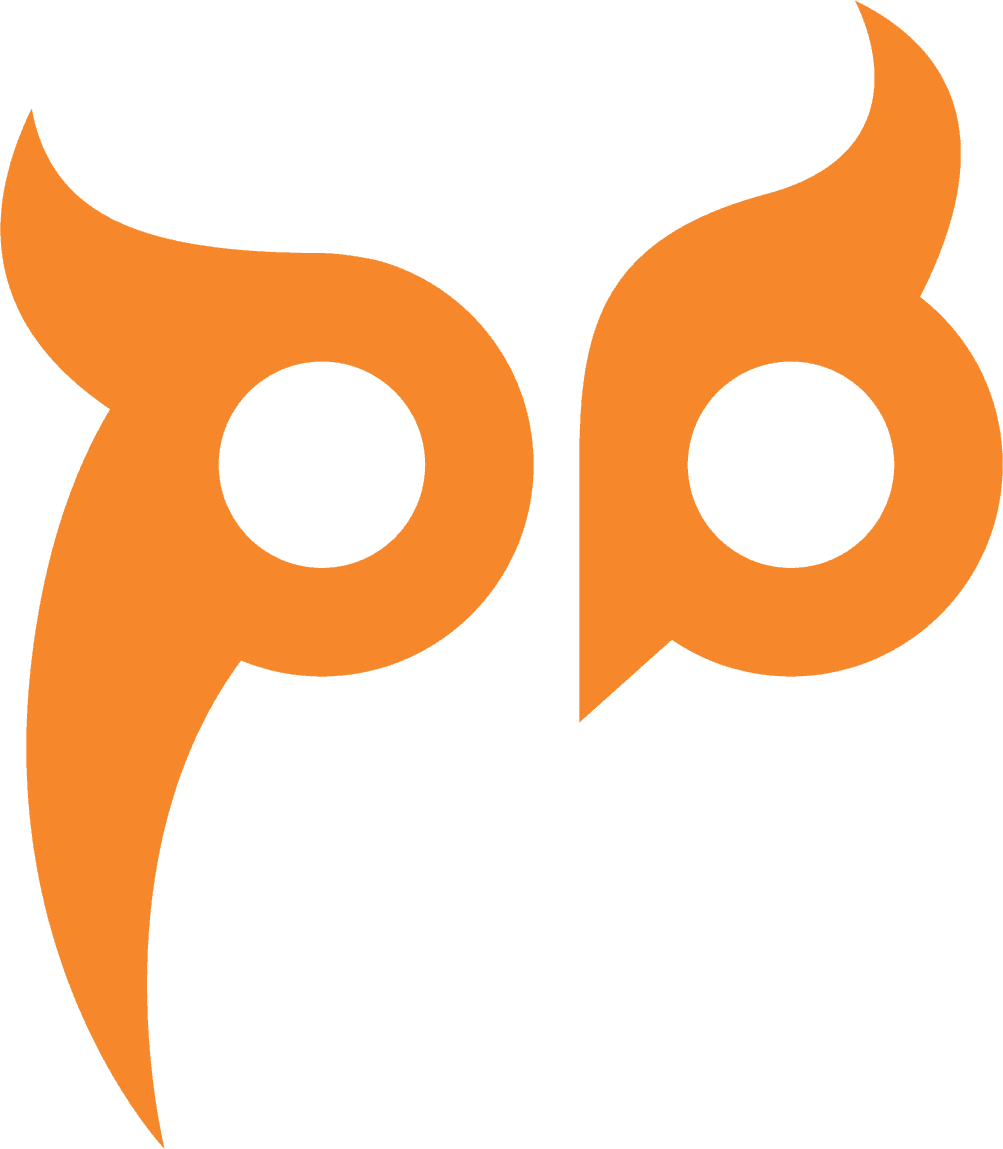The logo consists of a P and B, that together form an owl, symbol of wisdom. This character is used throughout the website and different outings to illustrate subjects and lighten up otherwise flat information.